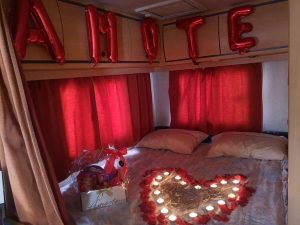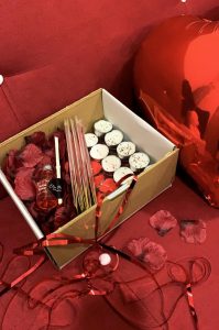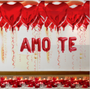 Para decorar uma divisão da casa. Inclui: Velas brancas, Velas vermelhas em coração, Pétalas, Balões "AMO TE" e adesivos para colocar na parede, Balões em forma de coração com hélio e um Ambientador cheiroso