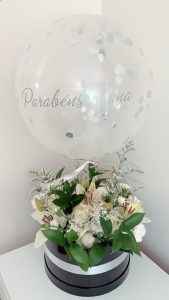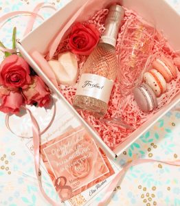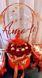 Composta por um champanhe Freixenet, um copo espumante, Macarrons deliciosos com sabores variados e um coração de Chocolate branco real recheado.
