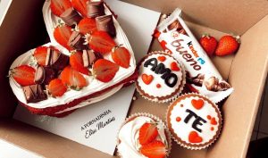 Sweet Box Love: Bolo em forma de coração e cupcakes.