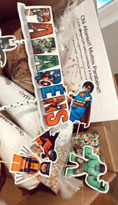 Kit personalizado para fazer e decorar o bolo em casa. Inclui mix de pó para massa do bolo de chocolate, recheio de kinder bueno e cobertura, bem como um guia de intruções personalizado, velas e toppers temáticos. *Para miúdos e graúdos*